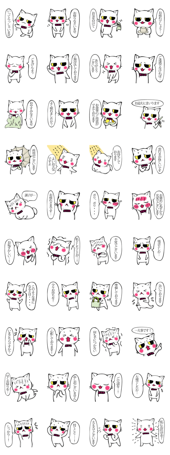執事口調の白猫が返事します。丁寧にあいさつしたり、心配してくれたりします。