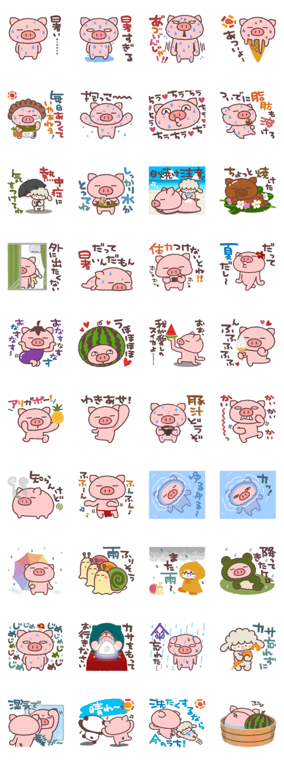 ぶたたはこの夏もクール&ハードボイルド。暑いのを言い訳にしながら汗だくであれこれします。梅雨もカバーするナイスなスタンプ。ぶたたスタンプ第14弾です。