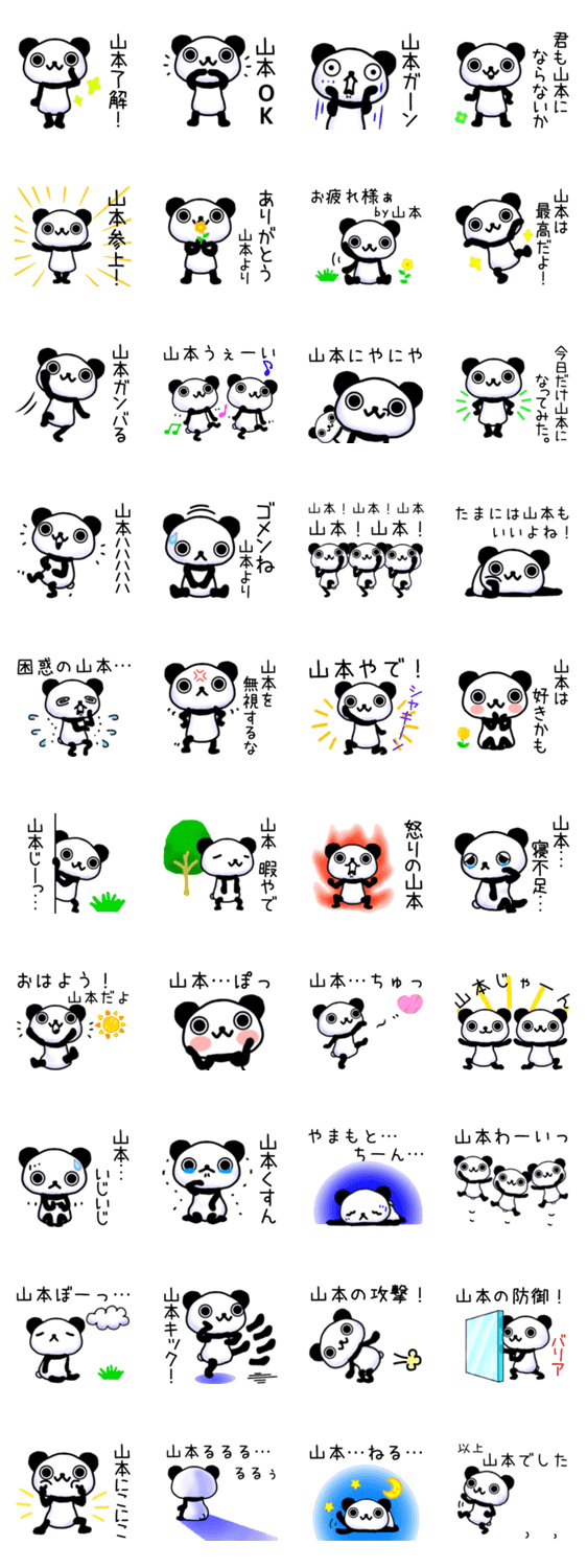 パンダの山本さんスタンプです。山本さん以外の方も使えます。あなたも山本さんになってみよう!