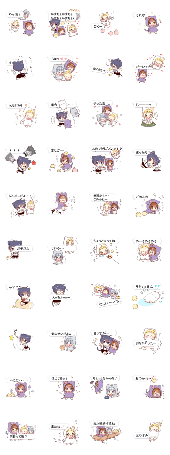 「ツンデレ猫耳少年」「猫耳フードのチビ」「アメショフードのチビ」のキャラクター達総出演!吹き出しの周りをうろちょろします!