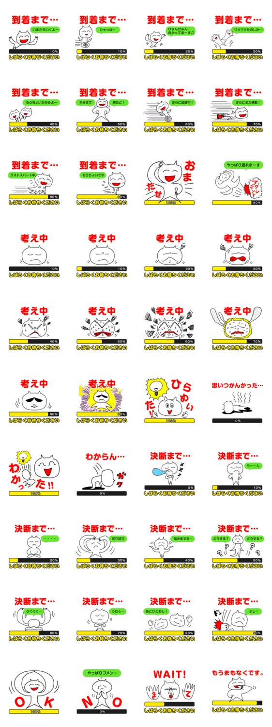 Now Loading...。返事したいのにすぐに返せないときってありますよね。しばらくお待ちください。私はいま考え中なんです・・・などなど。そんなときに使ってみてください。