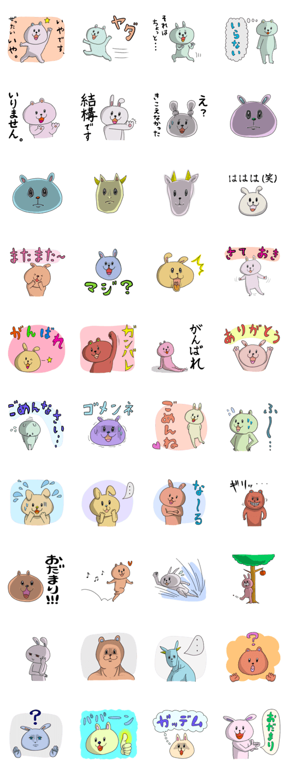 人間のような嘘・建前も使いこなす、かわいい動物たちのスタンプ。