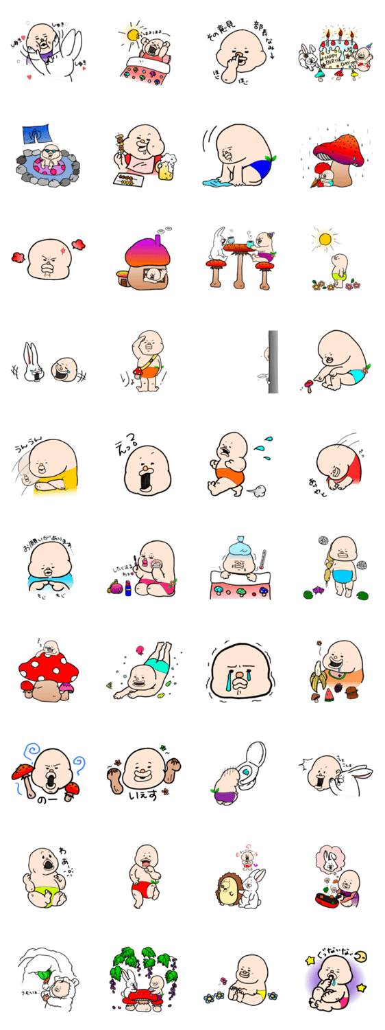 きのこの森に住む、ぴろぴろさんと仲良しウサギのりーさん ぶさいくですが、可愛くあなたの会話を飾ります!