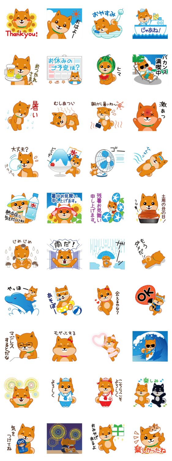 柴犬「ムサシ」第8弾です。夏のスタンプです。
