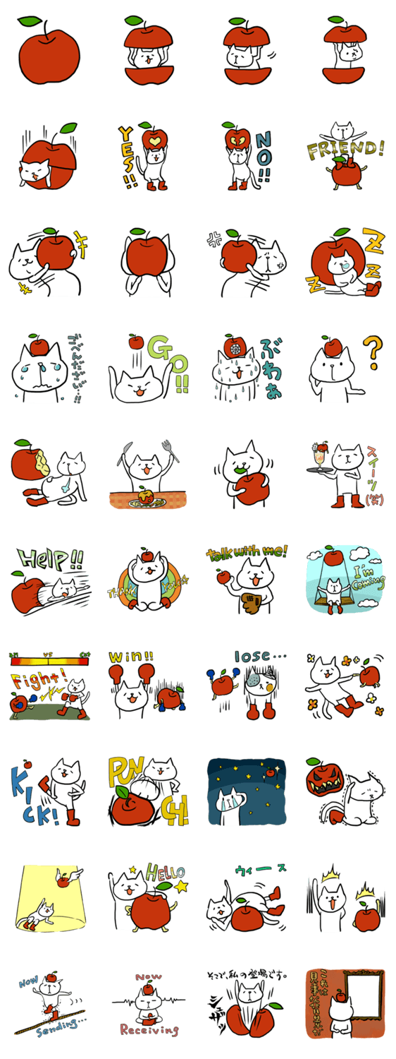 ネコとリンゴ1 -LINEスタンプマニア