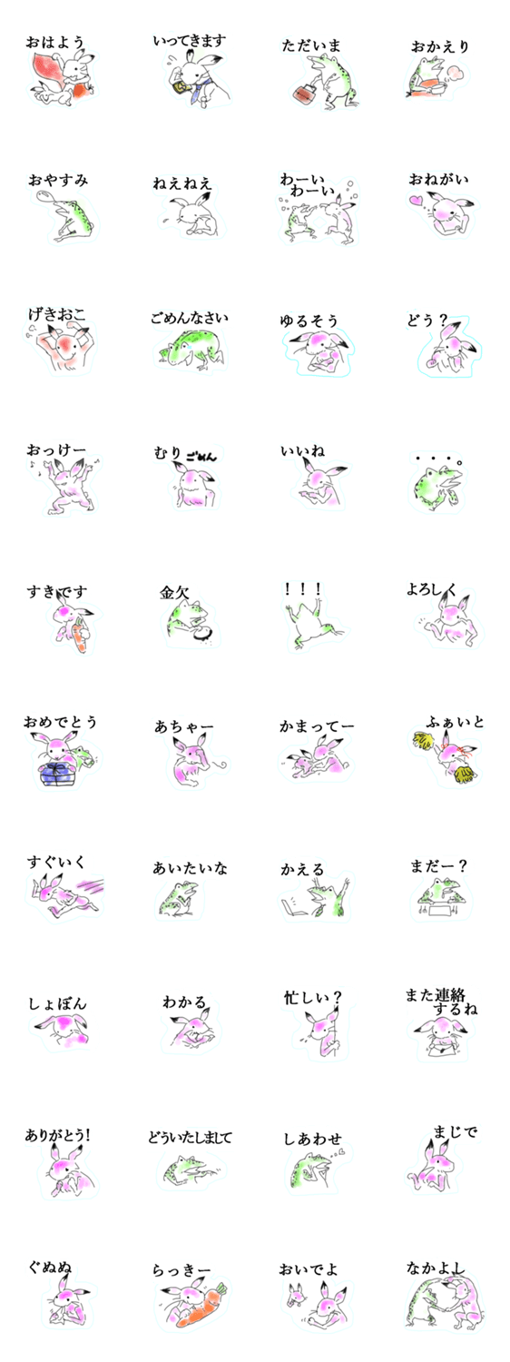 ウサギさんとカエルさん(鳥獣戯画風) -LINEスタンプマニア