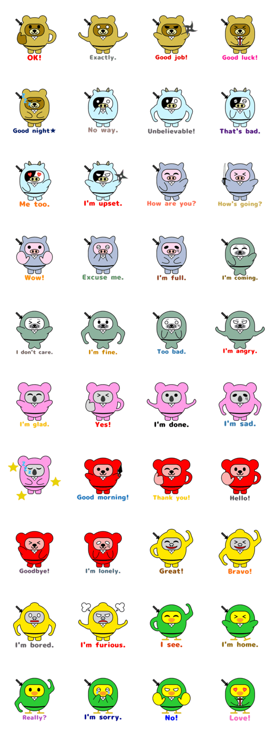 丸い動物の忍者たちパート1 -LINEスタンプマニア