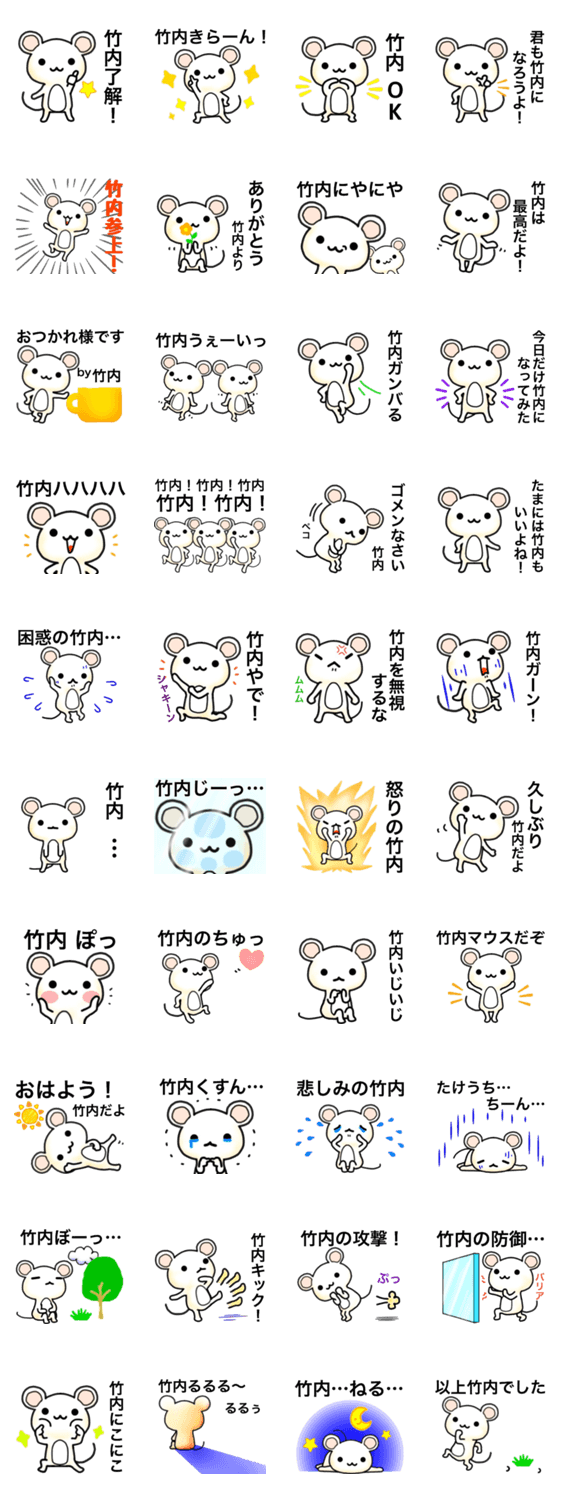 竹内マウス参上。竹内さん以外の方も使えます。あなたもこのスタンプで竹内ライフを体験してみて下さい。竹内さん最高!