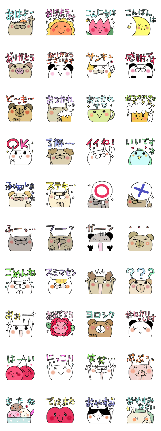 よく使う言葉を集めた見やすく便利なスタンプです。家族、ママ友、友人、みんなでお使いいただけます。