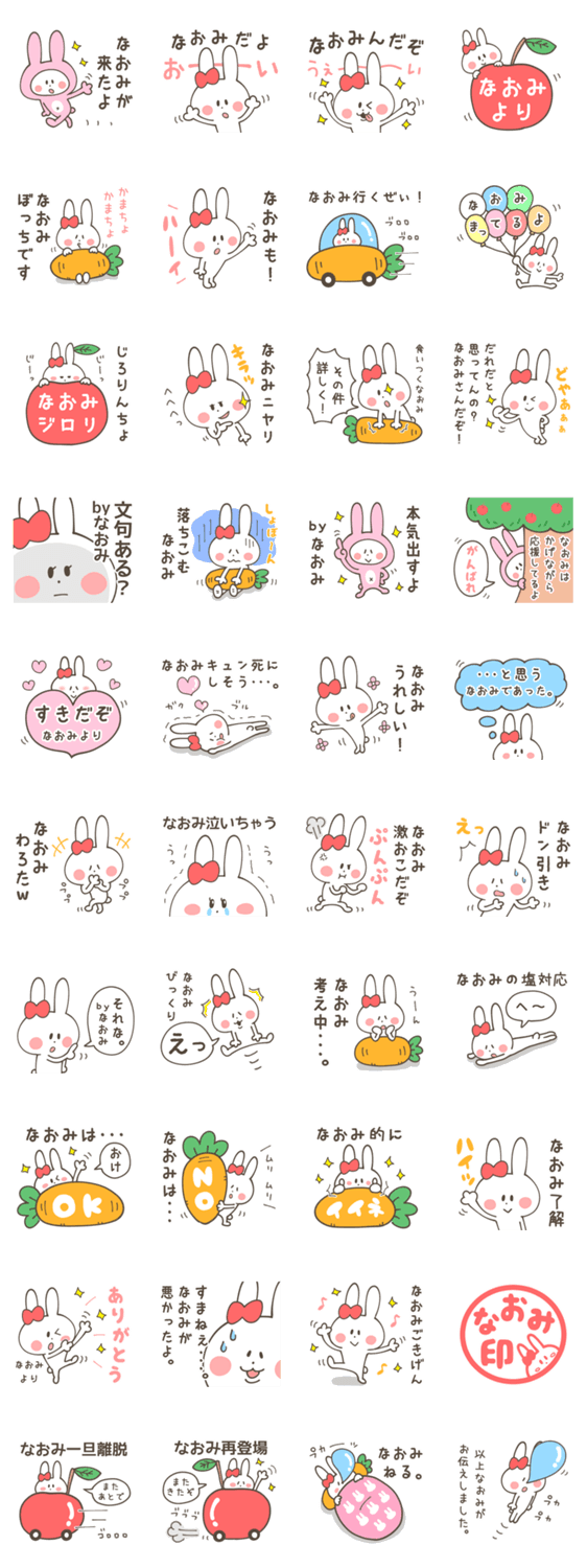 ウサギの名前シリーズ第12弾。「なおみ」さん専用です。直美、尚美、直実、奈緒美、直海、なお美、なおちゃんなどすべてのナオミさんへ!