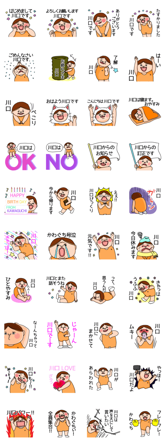 川口さんが使える、ゆるゆるなスタンプです。 ご家族や、親戚、お友達で楽しんでください。