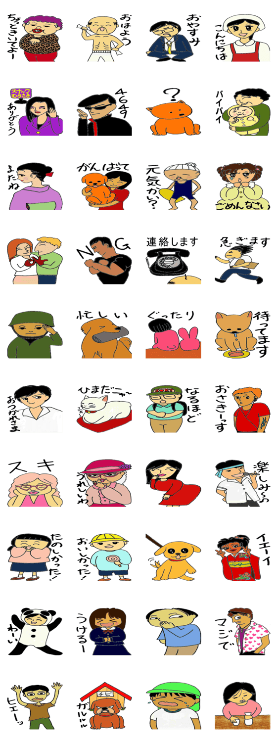 私が住んでいる町のご近所さんは素敵で個性的な人ばかりです。私は面白い人達や動物達のスタンプを作りました。このスタンプを見て楽しんでいただけたら嬉しいです。