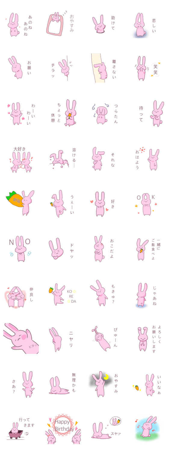 日常会話に使えるぼんやりうさ子のスタンプ。