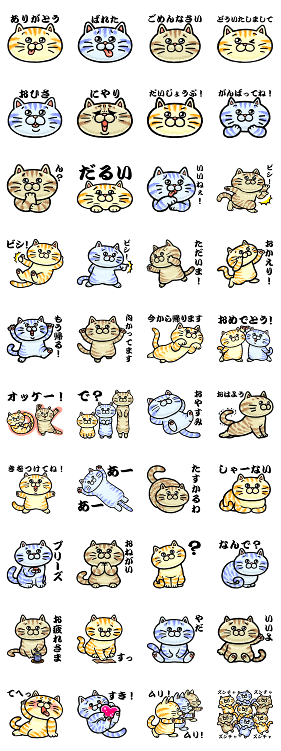 つぶらな瞳をしたトラ猫の日常的に使えるスタンプです。 茶トラ、サバトラ、キジトラの三種トラ猫。