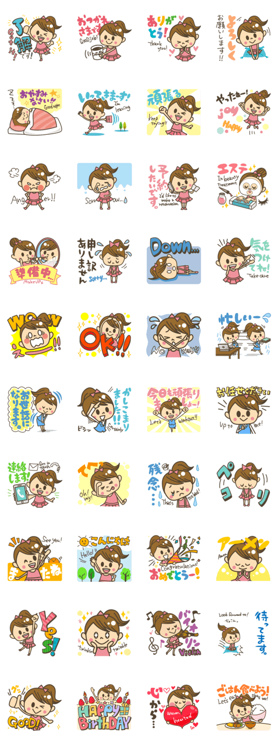 日常で使えるカワイイ女の子のスタンプ。エステ・予約・楽しい・ごはん・ありがとう・おつかれさまなどトークの返信や相づちに使いやすいメッセージを集めました!