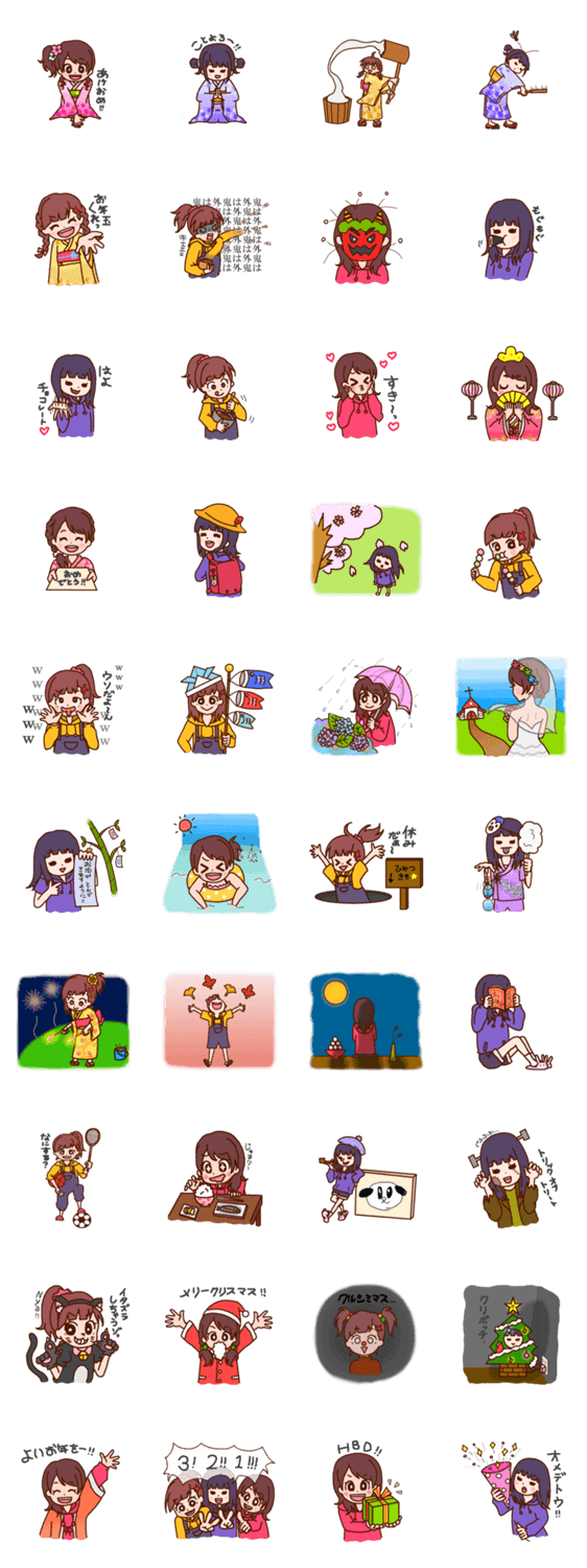 仲良し三姉妹 あーちゃん・みーちゃん・のんちゃん の個性あふれたスタンプ季節編です!
