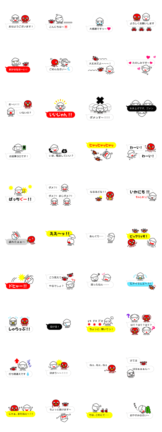 イカイカ大行進、第7弾にして「ふきだし編」が登場です。 仲間のタコくん、カニくんたちも一緒になって会話を盛り上げます!