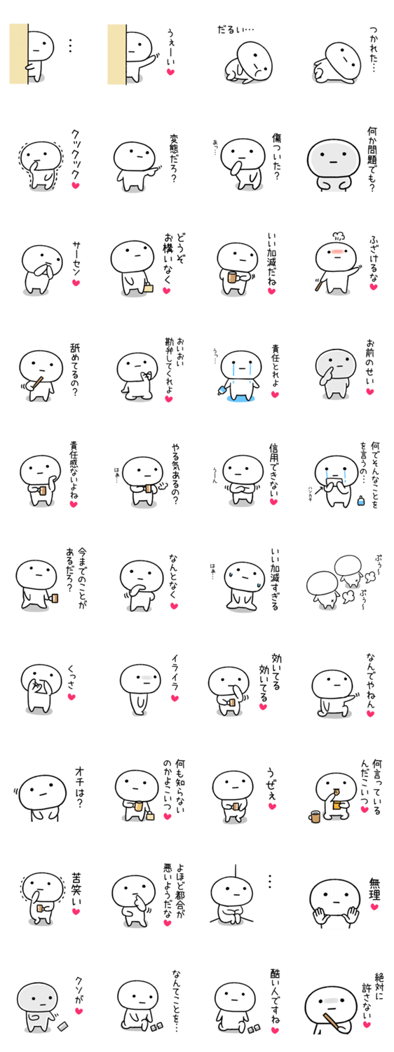 無表情で毒舌を吐くスタンプです。言いにくいことを無表情で呟いてくれます。