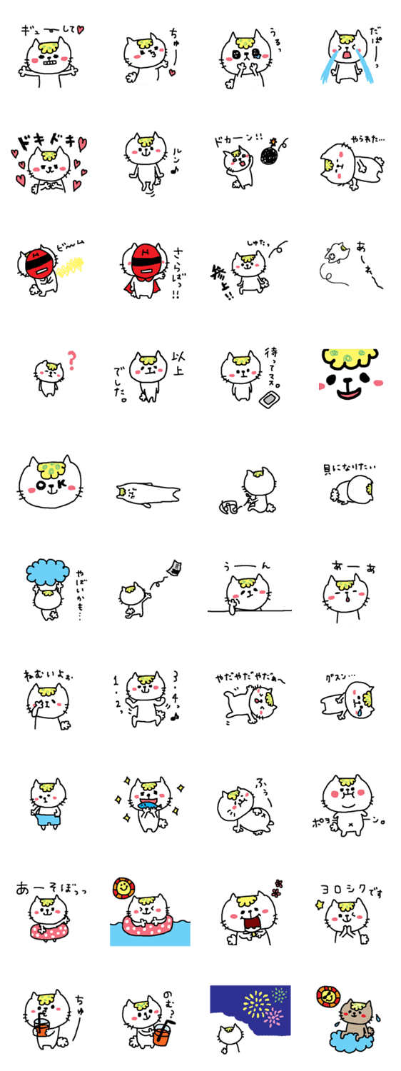 パステルカラーが可愛い猫。夏ステッカーもあるよ。