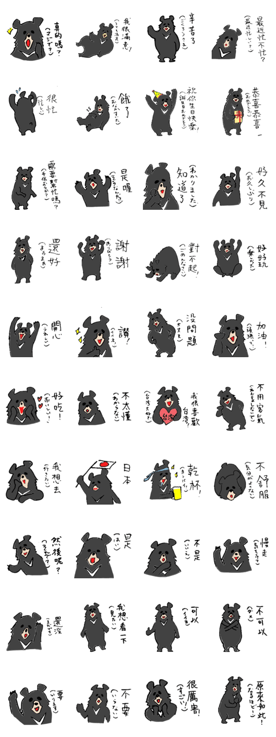 日本語と中国語(繁体字)が一緒になったスタンプ 親日で有名な台湾人とLINEでお喋りにぴったり! 使いながら言葉も覚えて一石二鳥!