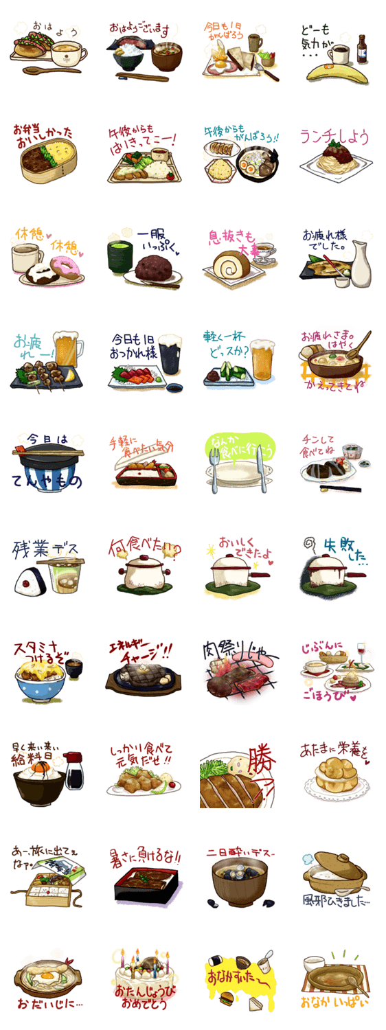 日常の一言を食べ物と共に。食べ物のイラストを見るのがお好きな方にオススメです。