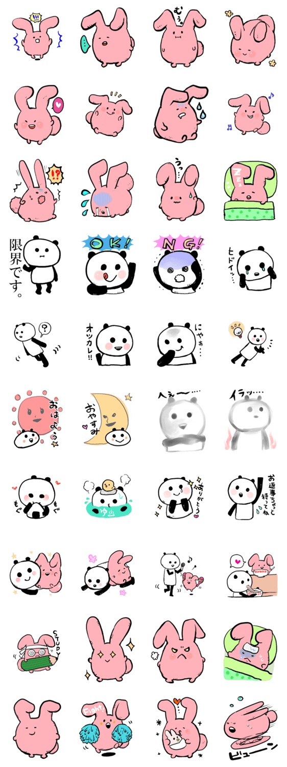 のんびりうさぎのウサピとパンダ(仮)のパン沢さんの、ゆるっゆるなスタンプです。