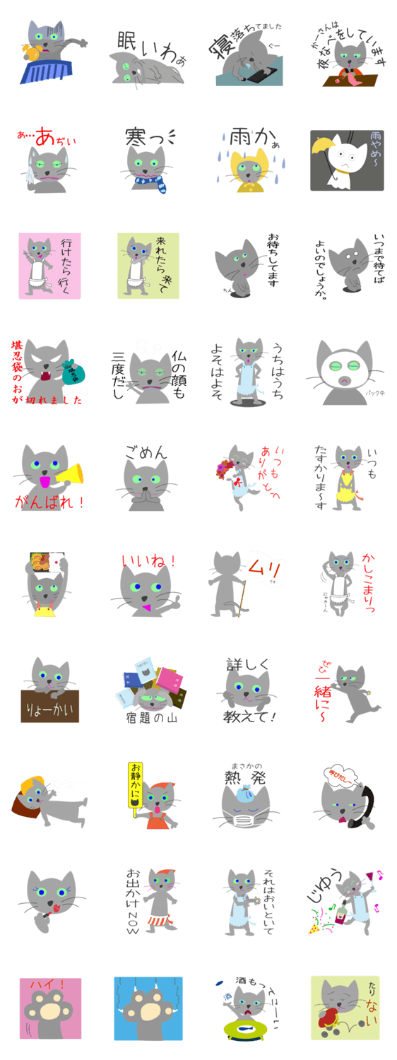 ねこのスタンプ。お母さんたち使ってください。