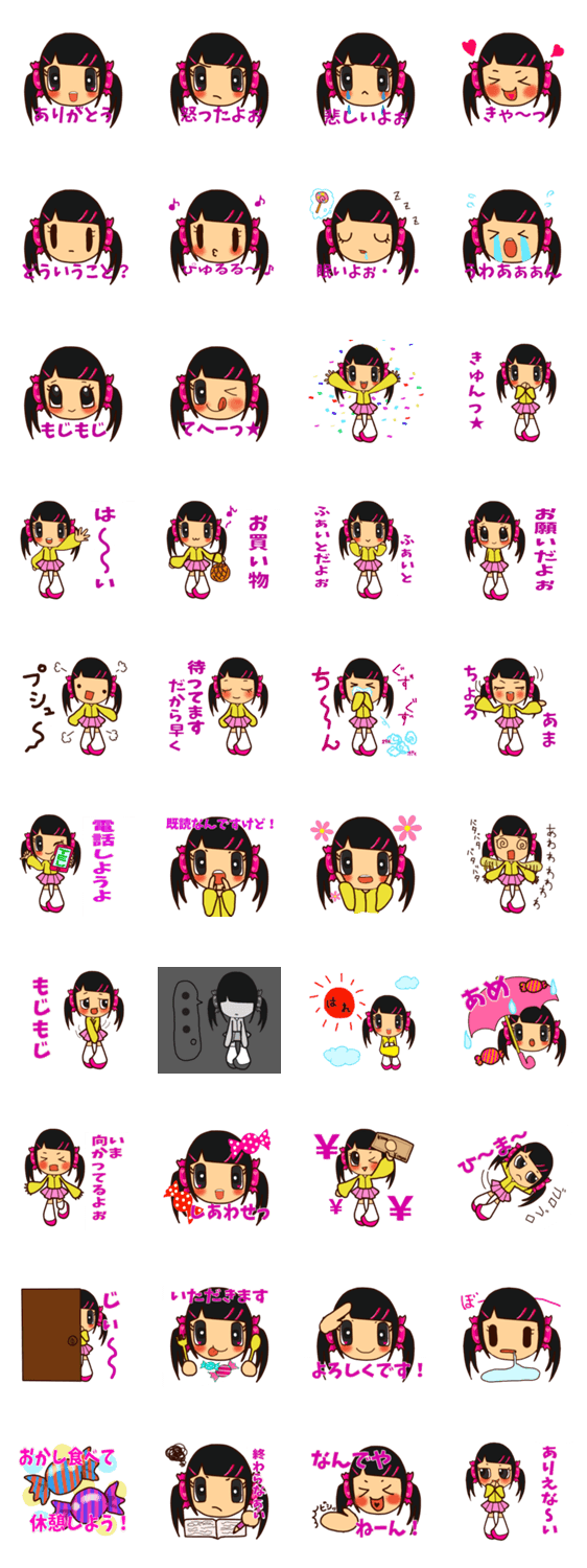 原宿系女の子【きゃんでぃのいどちゃん】スタンプです。可愛い口調です。いろんな表情や、しぐさがとっても可愛いらしいポップな女の子をよろしくお願いします。