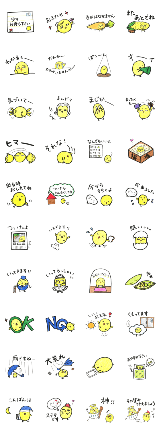人間のような、表情豊かなひよこのスタンプ第3弾です。 会話の中で使いやすいスタンプを考えて作りました。