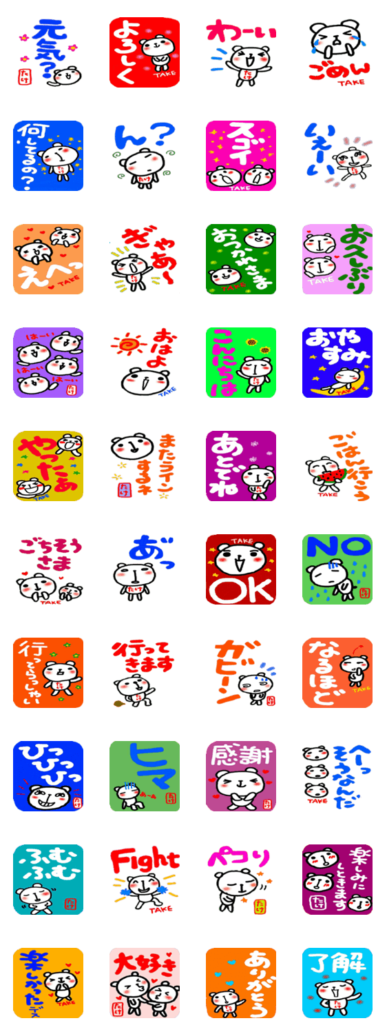 全国のたけちゃん(たけし、たけお、たけのり、たけ)が使うスタンプです。 恋人、友人、家族との日常会話や挨拶に使って下さい。