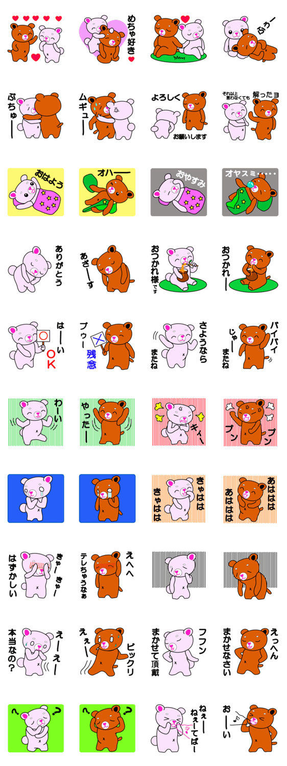 可愛いクマのスタンプです。同じ気持ちでも性別により仕草が違います。 お楽しみ下さい。