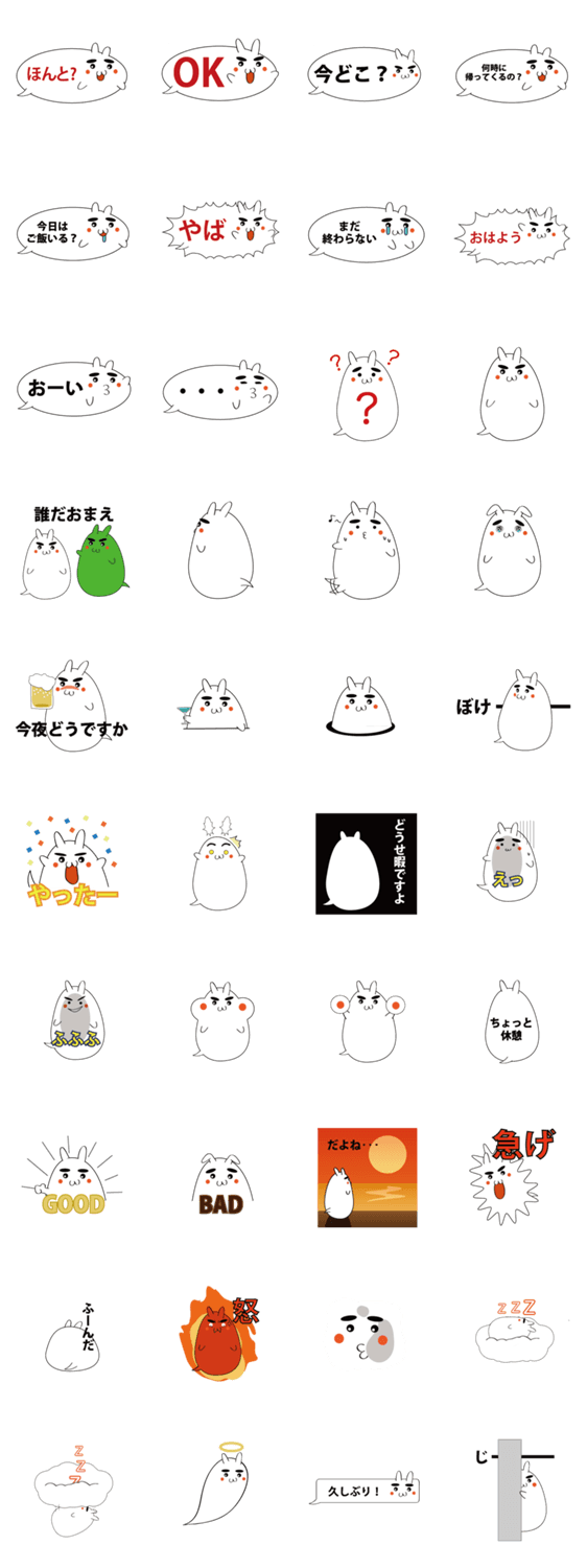 ふきだしがうさぎになってしまいました。とっても可愛く、太い眉が特徴のキャラクターです。たくさん使ってあげればきっと喜びます。