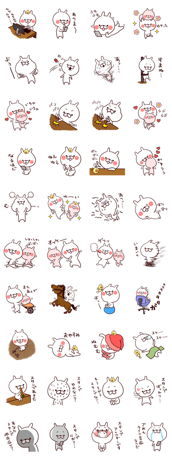白く、ゆるく、可愛い、うさぴこ3のスタンプ。