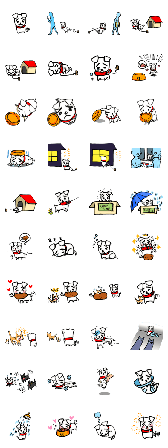 かなしい表情をした犬のスタンプです。無言で訴えます。