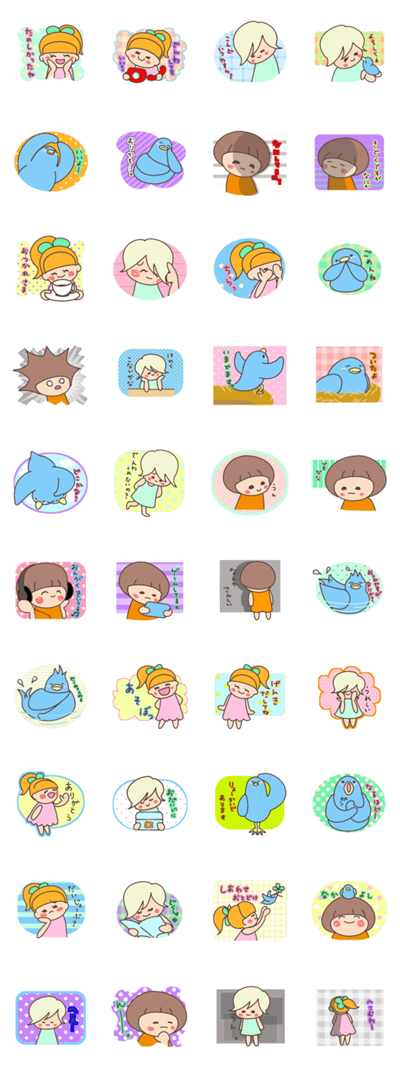 しあわせを呼ぶクローバーとすずらんをモチーフにした女の子とおともだち。ゆるかわだけど、たまにこわい?スタンプにしました!