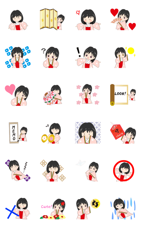 平安時代の少女をイメージした和風のアニメーションスタンプです。日本や和風が好きな方向け。動作のみやシンプルな英語で日本以外の国でも使える動くスタンプです。