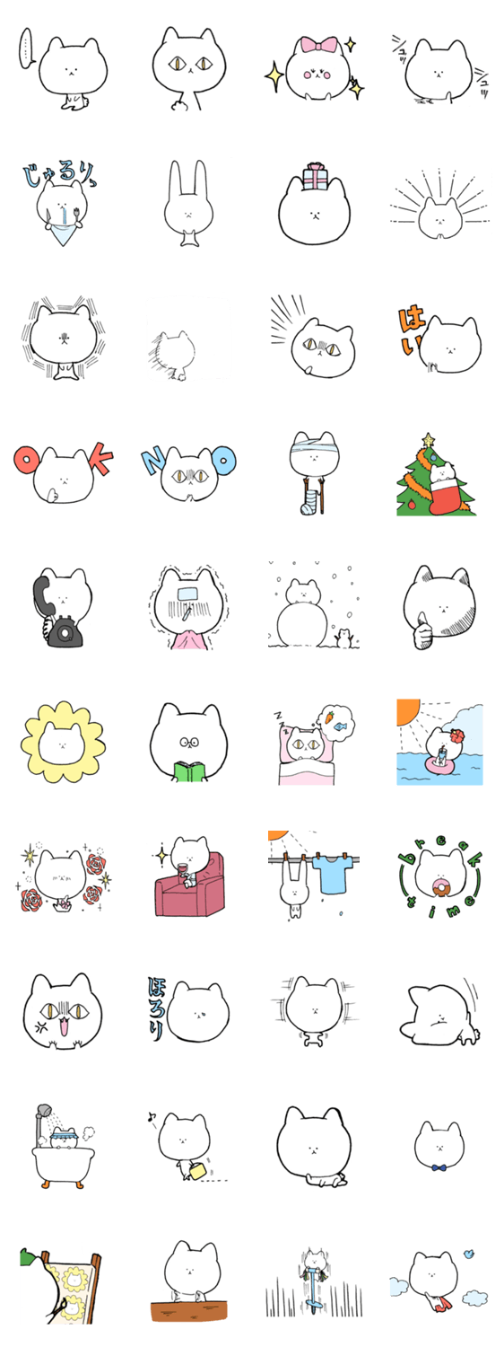 うさぎのようなねこのようなゆるーい生き物のシンプルなスタンプ。