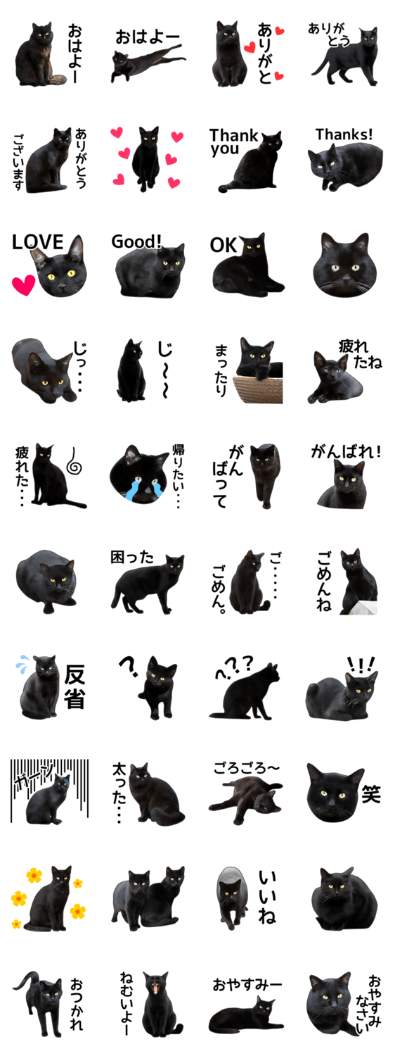 かわいい黒猫たちが、使いやすいメッセージをお届けします。いろんな黒猫から、好みの子を使ってくださいね!