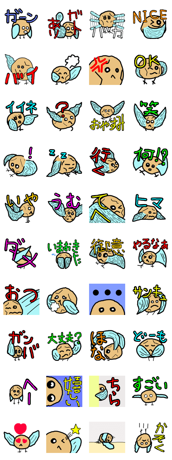 ポテト+鳥でポテ鳥です!かわいいジャガイモ鳥のスタンプです!ジャガイモは美味しい!みんなもジャガイモを食べよう!
