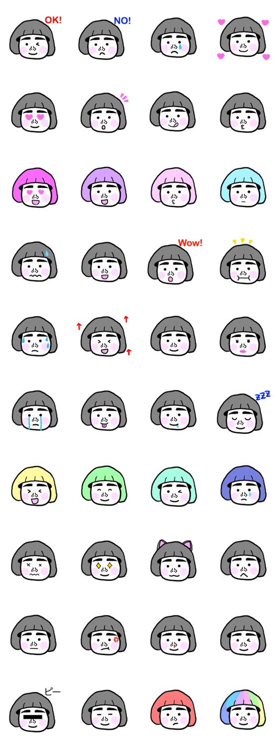 かわいいほんわかゆるカラフルおかっぱ頭ちゃん。 たくさん使ってください