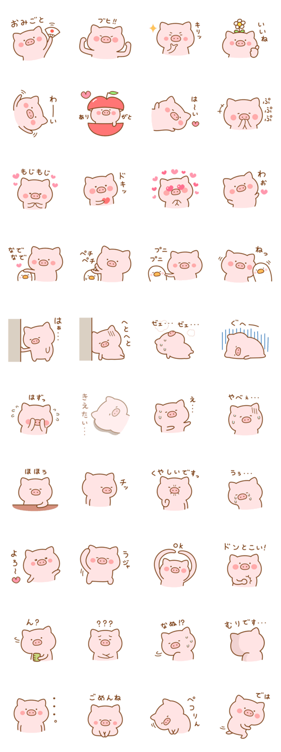 つぶらな瞳で語りかけるこぶた「ぶたたん」のスタンプ第十弾です。