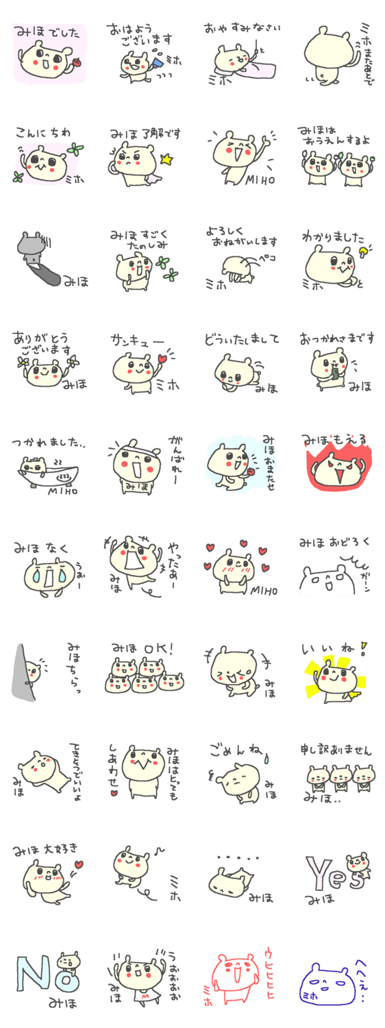 みほさん、みほちゃん、MIHOさんのための人気名前クマスタンプです。毎日つかえるシュールなくまになります。