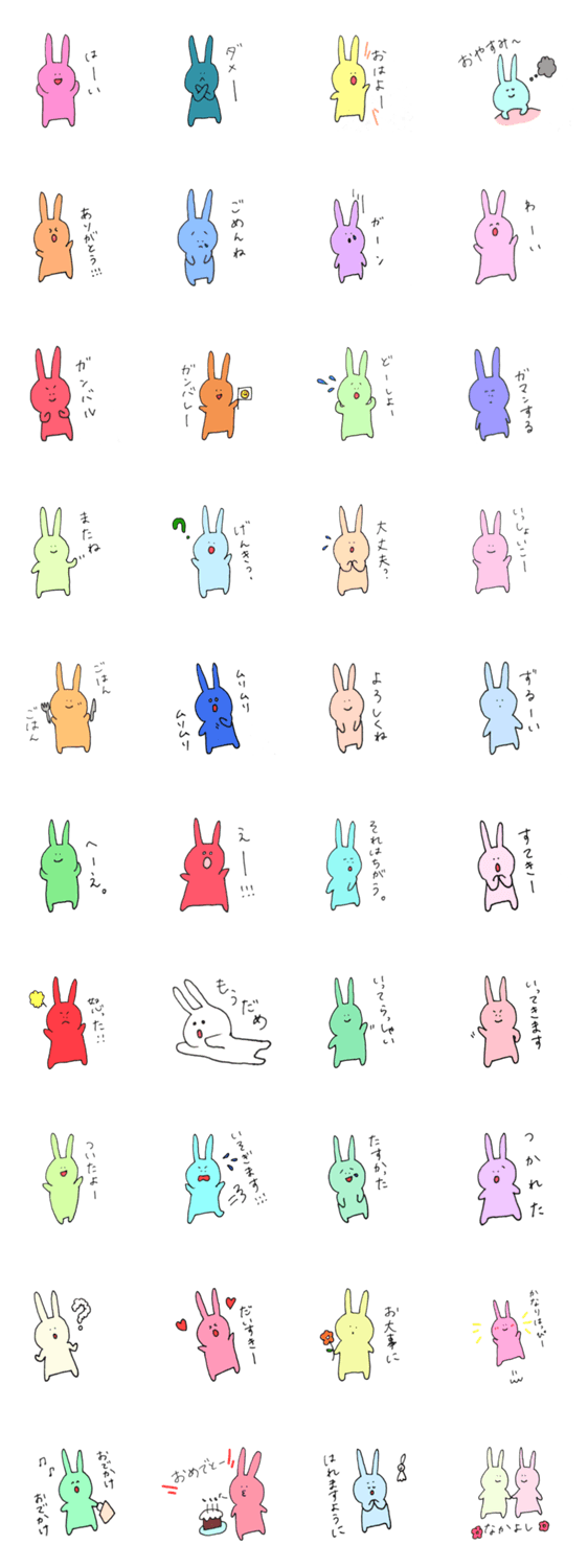 日常生活でゆるーく、気軽に使えるカラフルなうさぎのスタンプです。