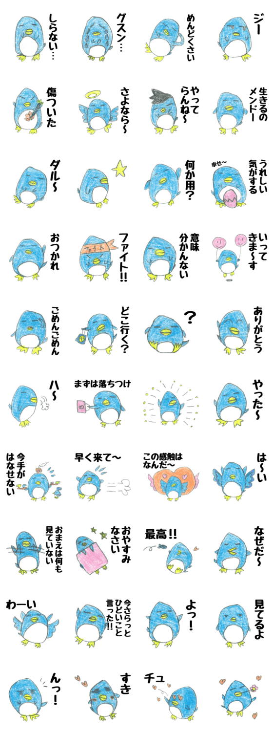 子供が描いた、ゆるくてダルいペンギンスタンプです。