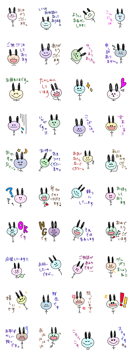 どんな相手にも使いやすい!敬語のスタンプです。 脱力系ゆるカワうさぎなので、畏まり過ぎないのもポイント!