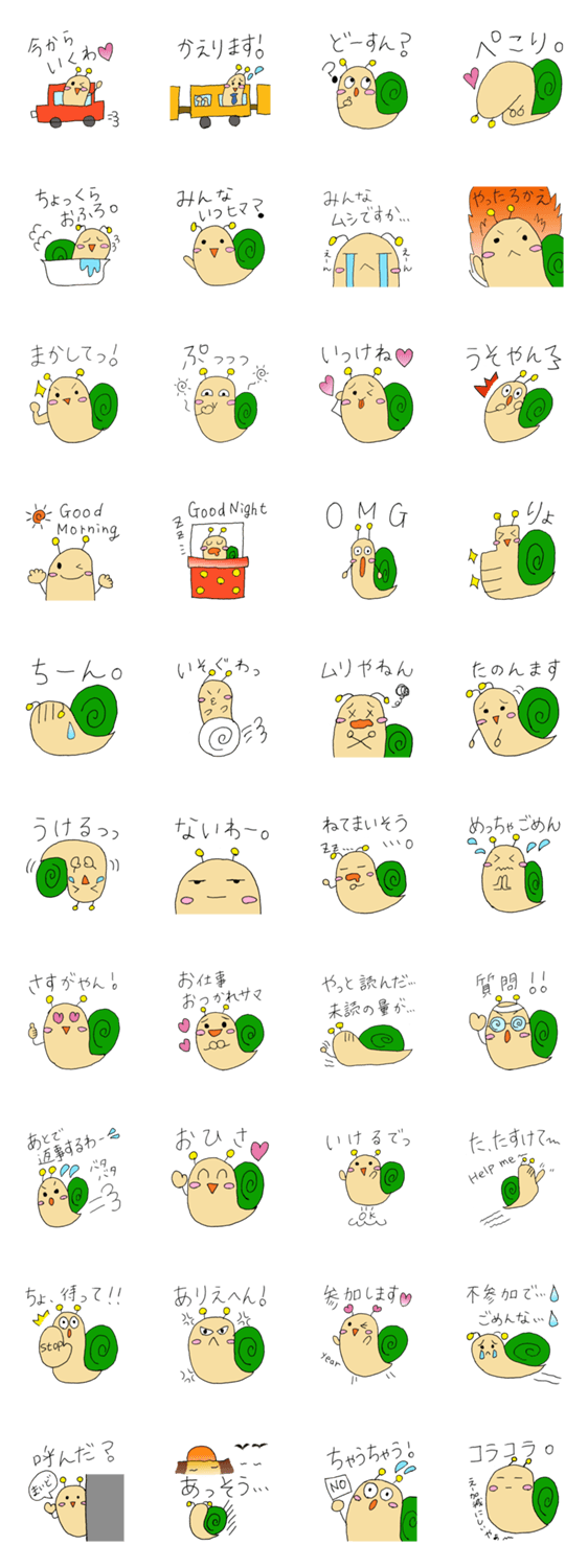 関西の大阪出身のカタツムリ君スタンプ。日常会話、グループラインに使える関西弁です。
