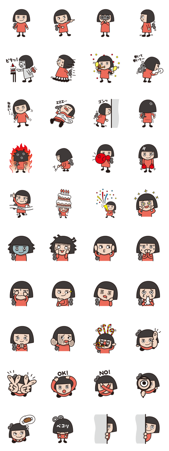 言葉少なめのスタンプです。ぜんまい巻き巻きののかちゃんが、あなたの気持ちを代弁してくれます。