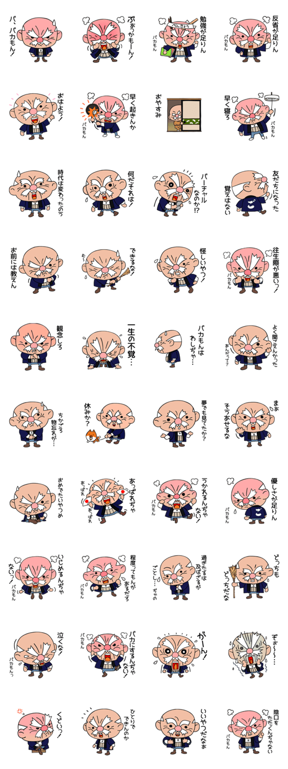 吾平は小言が多く「バカもん」が口癖のじいさん。口うるさい吾平のスタンプ第2弾です。