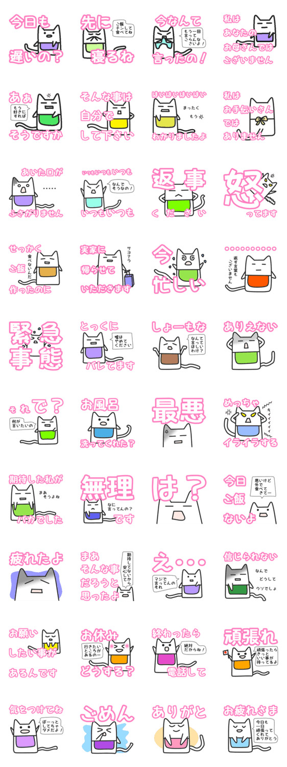 女子ネコの妻バージョンです。旦那さんへのメッセージ盛りだくさんです。