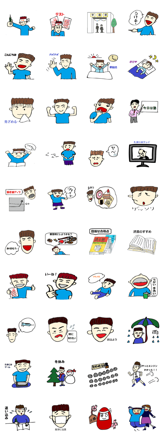 9月に行われる中学の展示会でラインスタンプづくりを発表します。毎年、受験生もたくさん訪れるので応援のスタンプを作りました!